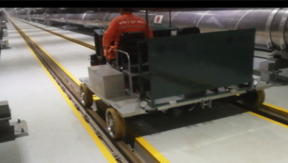 通過(guò)鋰電池提供動(dòng)力通過(guò)電機(jī)帶動(dòng)平車行走,平車設(shè)有隨車控制按鈕,可控制輕車前進(jìn)、后退、停止、加減變速。平車采用機(jī)械式和自動(dòng)抱閘制動(dòng),制動(dòng)平穩(wěn)、可靠、使用安全、檢修方便。為了保證軌道檢測(cè)平車運(yùn)行的安全,在平車的操作按鈕上加裝了緊急停止按鈕,在平車兩段設(shè)置了聲光報(bào)警裝置。制動(dòng)系統(tǒng)采用機(jī)械式制動(dòng),具有失電自動(dòng)制動(dòng)功能,可以在手動(dòng)釋放剎車,保證人可以推動(dòng)平車運(yùn)行。
